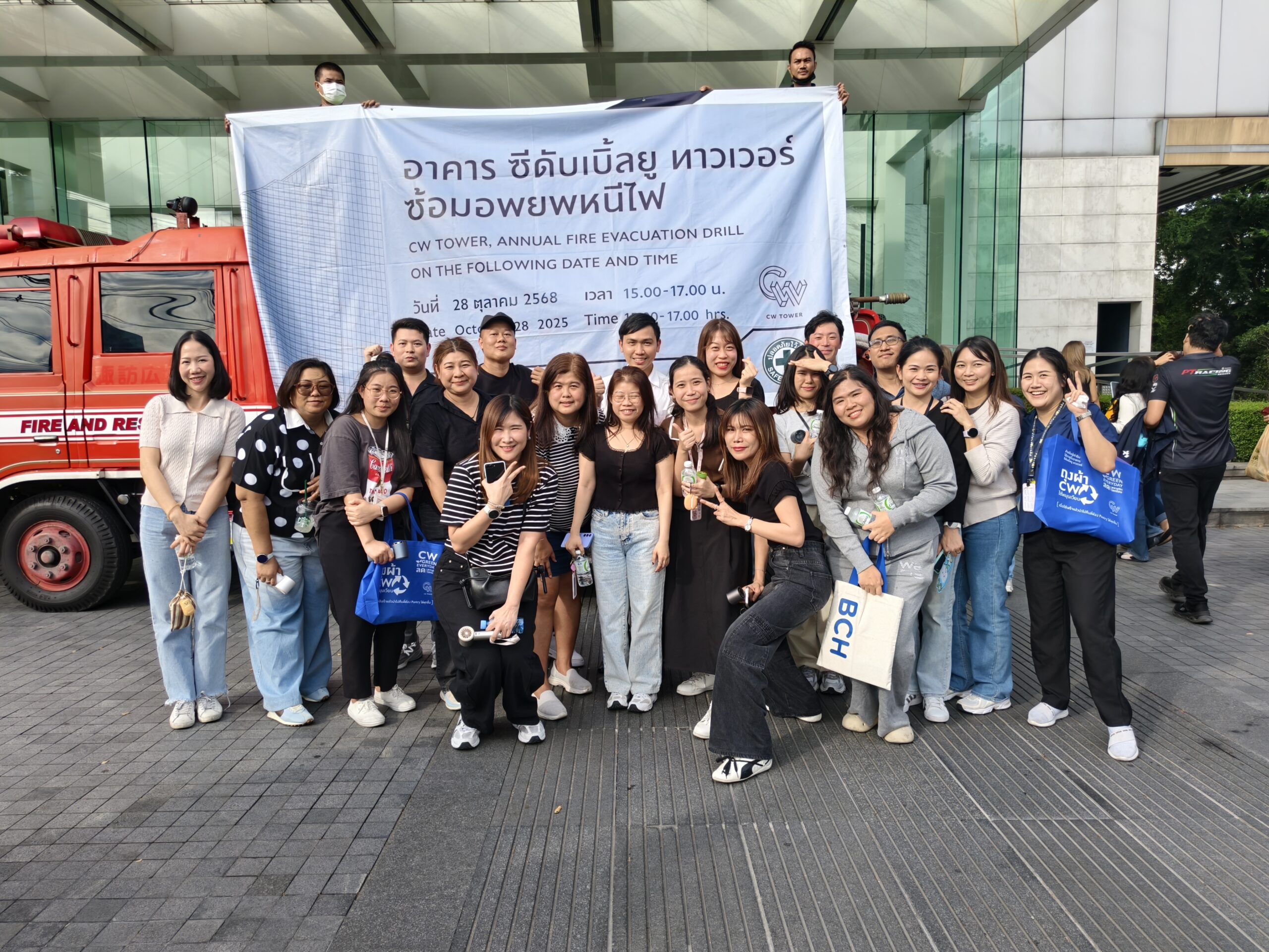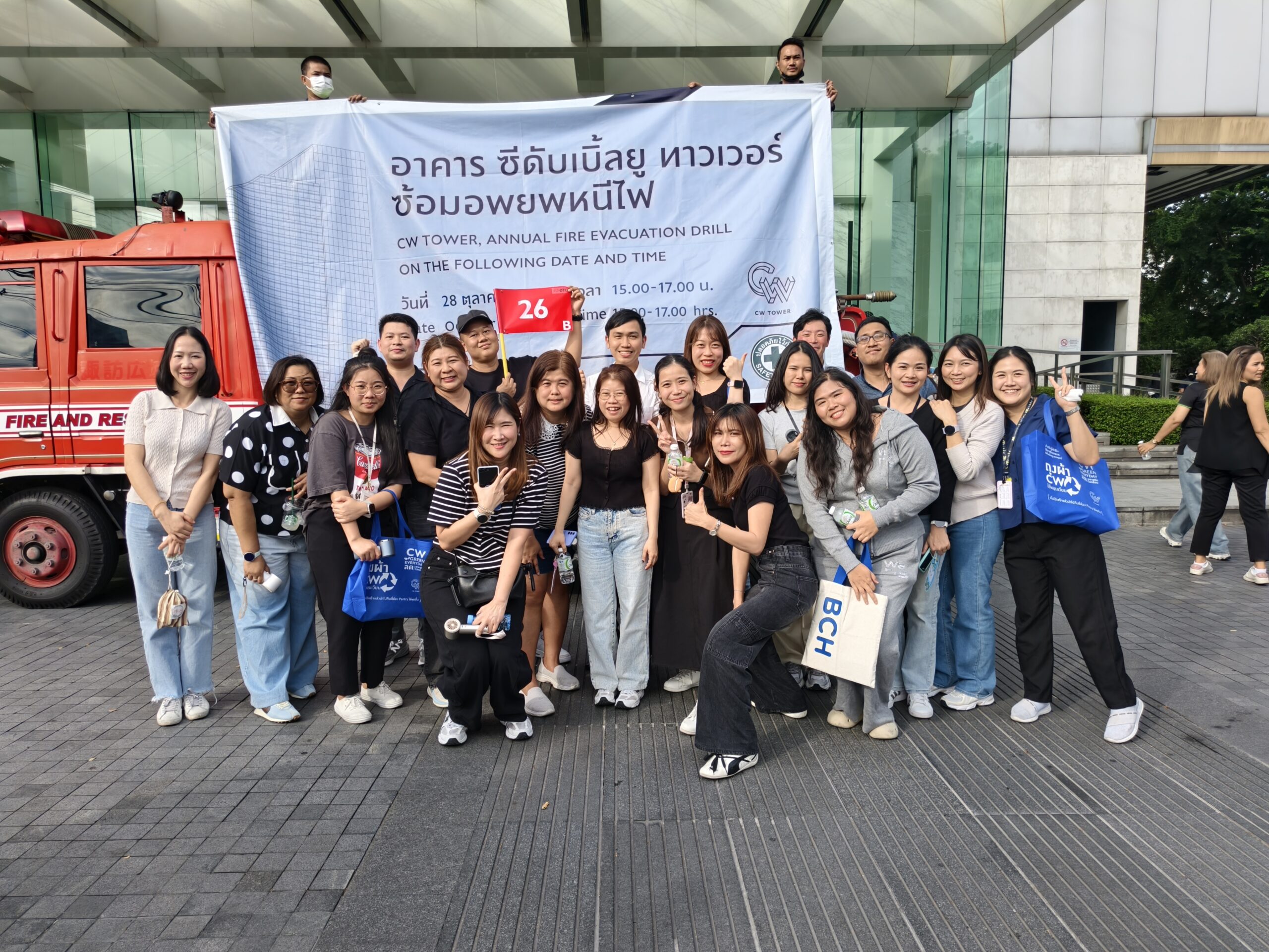 ณ อาคาร CW Tower ร่วมฝึกซ้อมและเตรียมความพร้อมรับมือเหตุฉุกเฉินโดยการ เพื่อความปลอดภัยของพนักงานทุกคน
